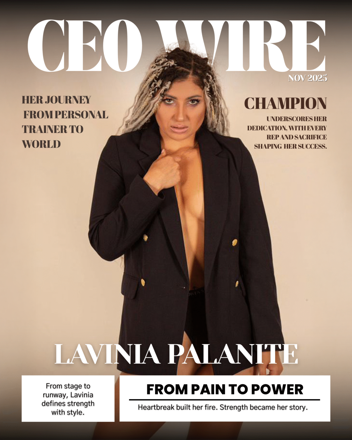 This redefinition of success speaks to a deeper truth: fulfillment isn’t about owning everything; it’s about owning yourself. Lavinia’s focus has always been on becoming the best version of herself — mentally, physically, and emotionally.